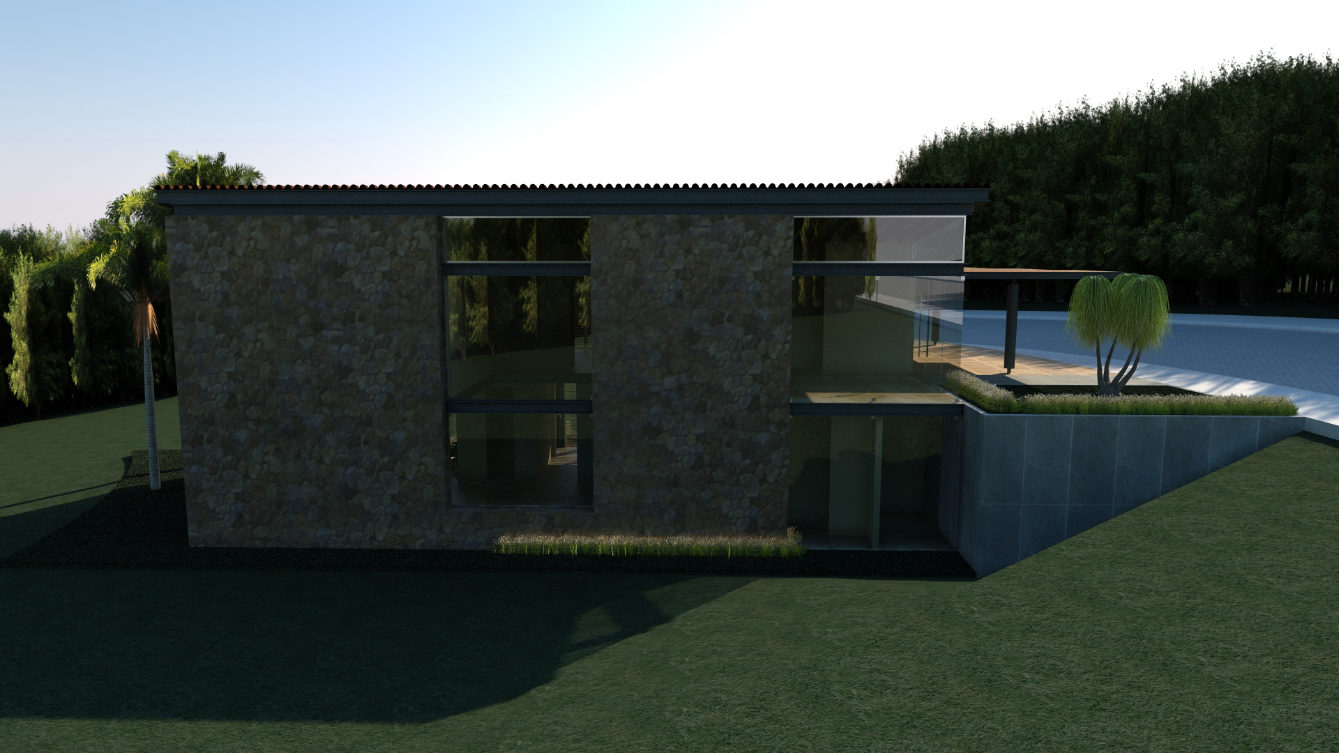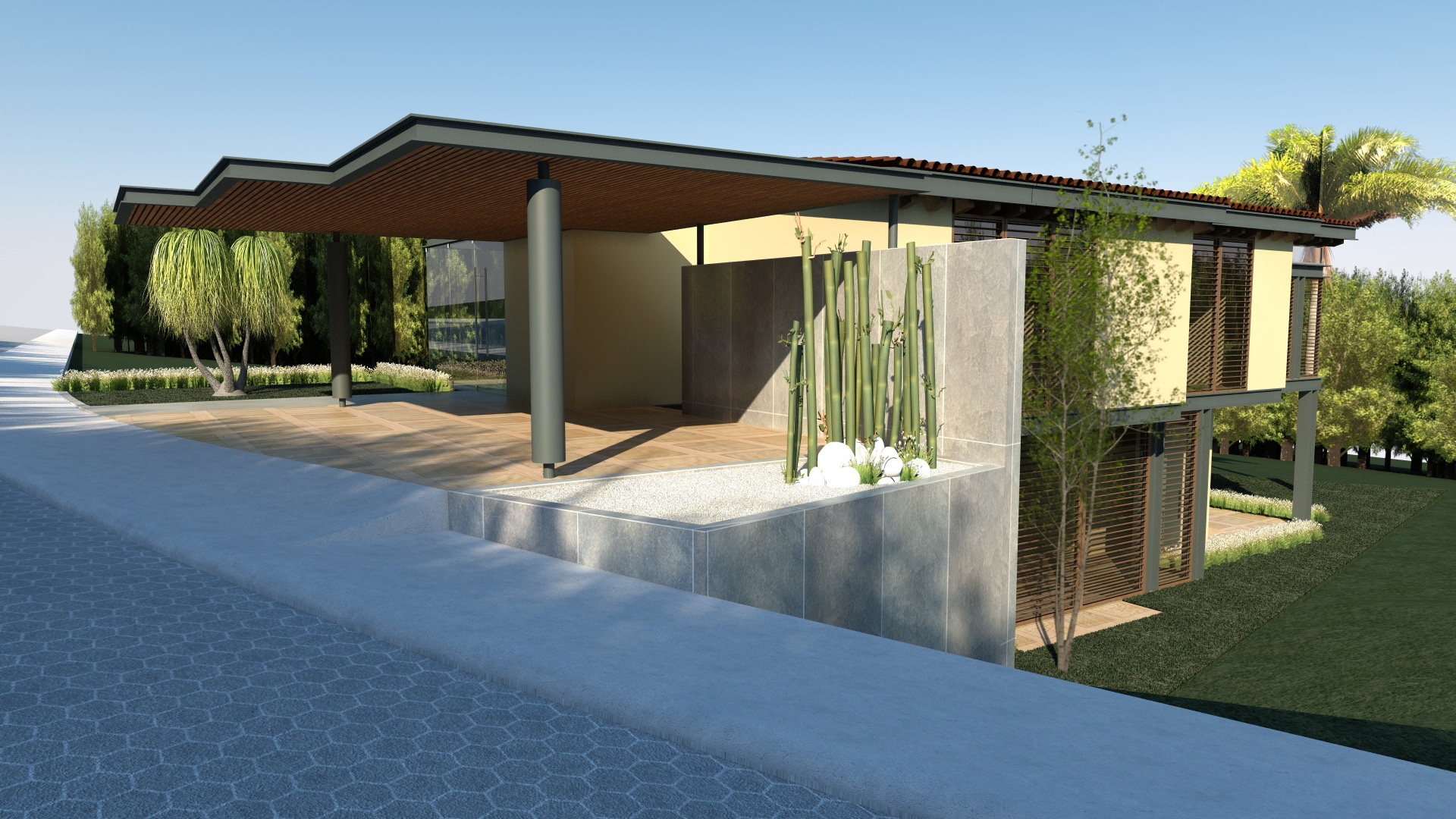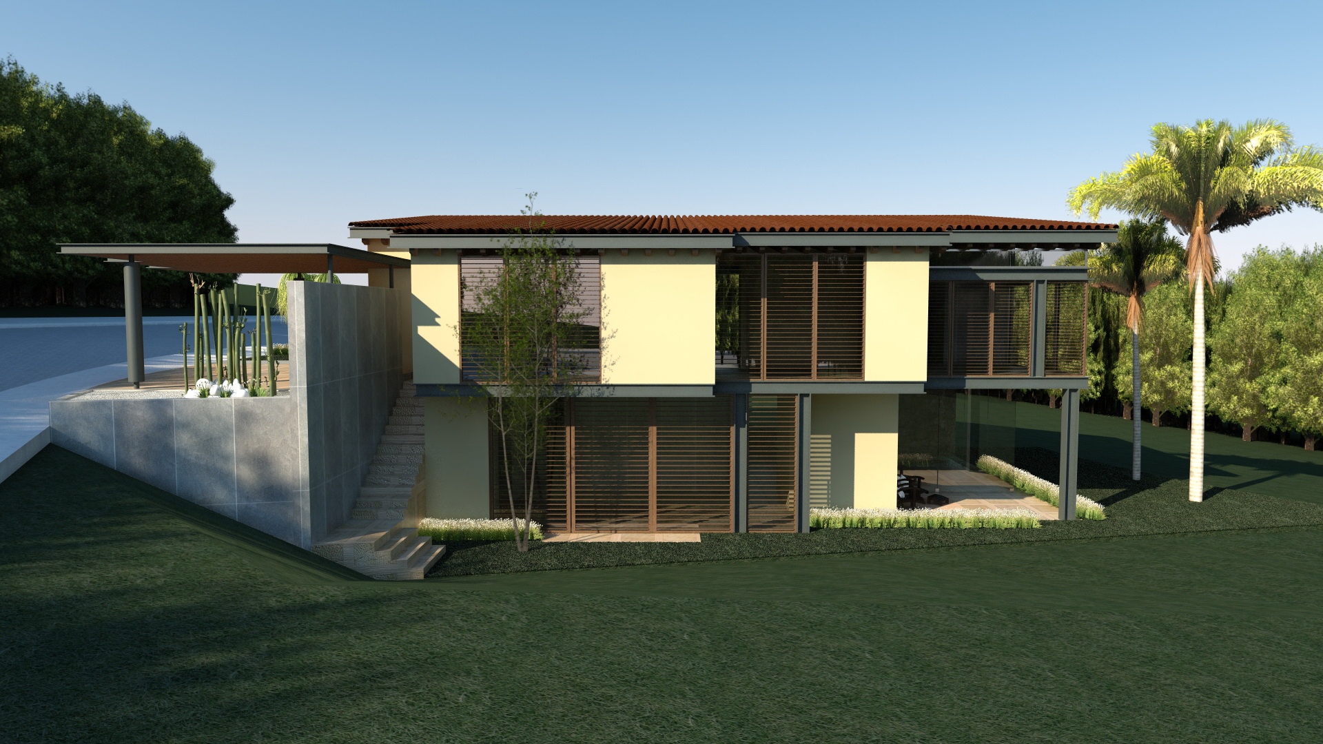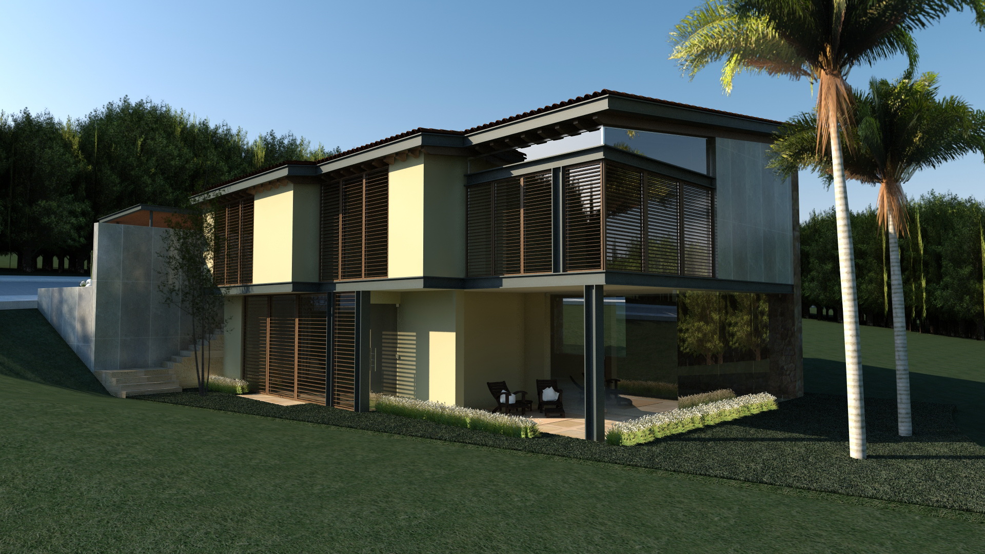 El planteamiento conceptual, integra toda la casa entorno al vestíbulo principal, debido a que este conecta todas las áreas de la casa. Los materiales le dan un ambiente muy cálido y le permiten jugar con su entorno