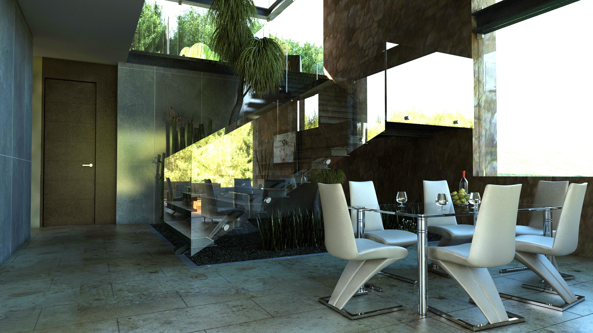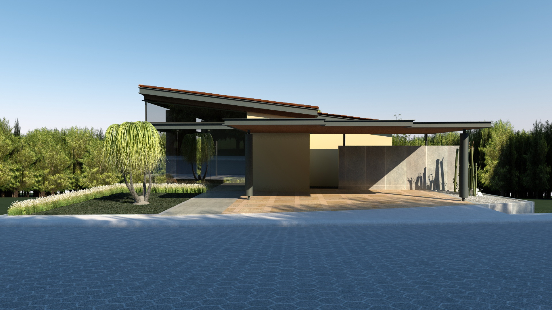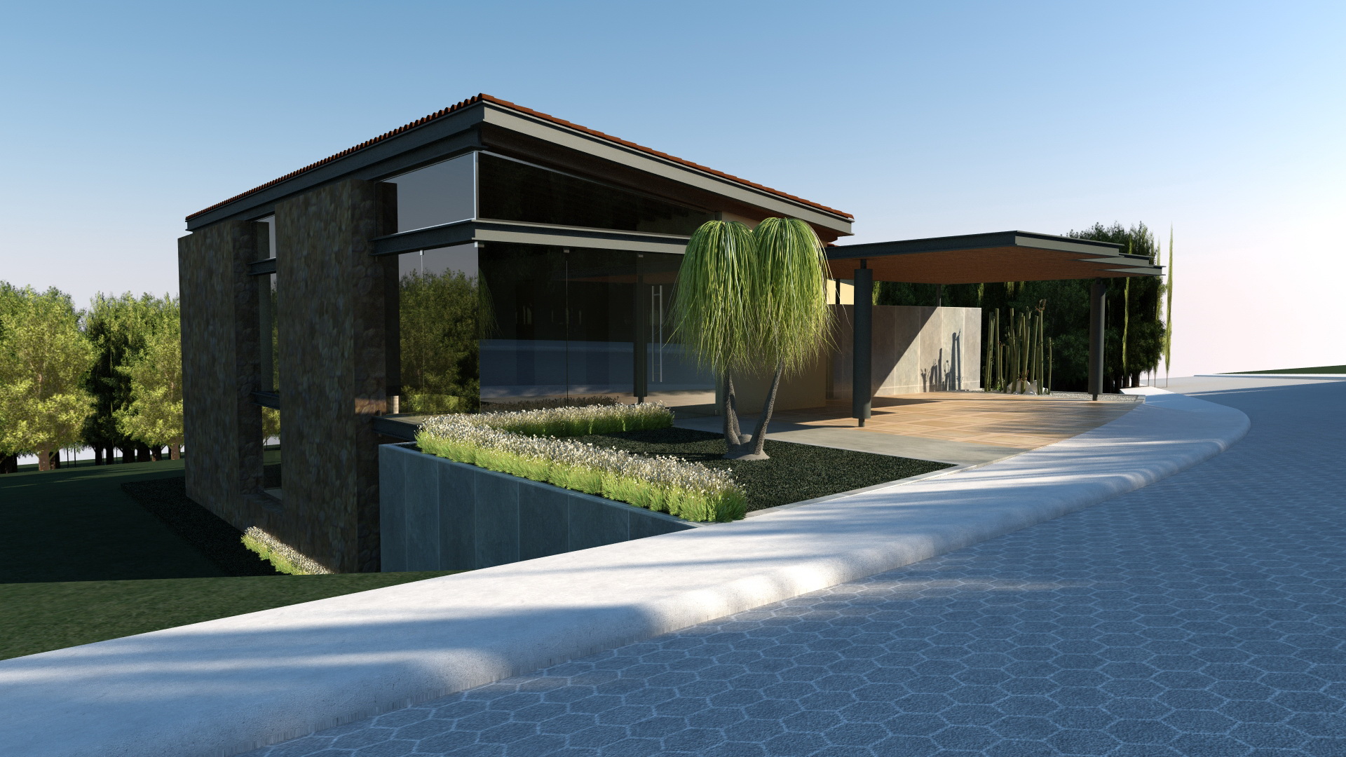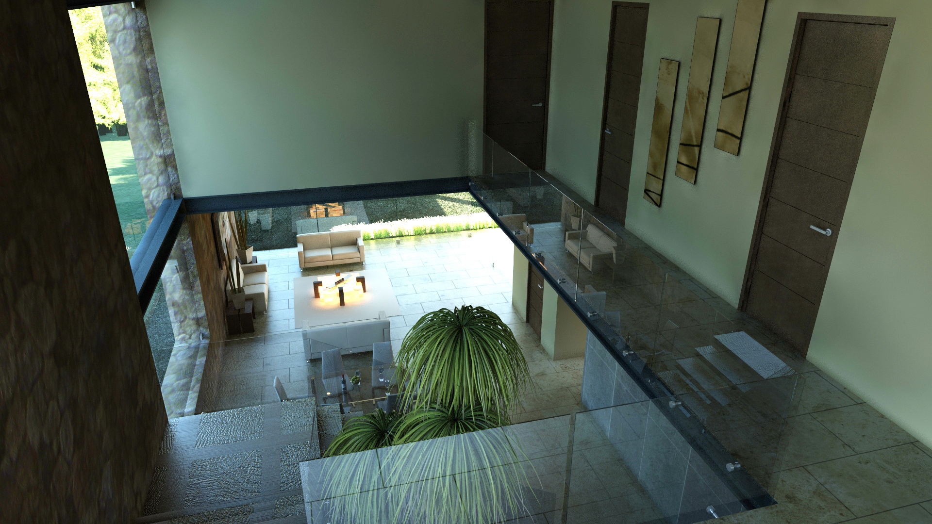 El planteamiento conceptual, integra toda la casa entorno al vestíbulo principal, debido a que este conecta todas las áreas de la casa. Los materiales le dan un ambiente muy cálido y le permiten jugar con su entorno